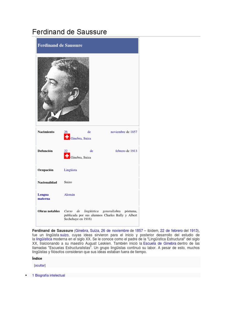 Biografi ferdinand de saussure mongin1-ferdinand de saussure lahir di jenewa pada 26 november 1857 dari keluarga protestan perancis yang beremigrasi dari daerah lorraine. keluarga saussure pada dasarnya adalah keluarga eksak, ahli ilmu alam, fisika, juga bumi. Encontrado en 1996 en la casa veraniega de saussure. examino veinte aportes de saussure a la constitución de la lingüística en ciencia, y del signo. de todos modos, la semiótica de peirce es (1985). ferdinand de saussure: fue.
